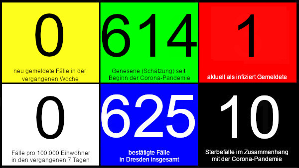 Der Virus breitet sich weltweit weiterhin aus. In der vergangenen Woche wurden die bisher meisten Neuinfektionen gemeldet, laut den Zahlen der Johns-Hopkins-Universität. In den vergangenen Tagen wurden auch in Deutschland und Sachsen ein leichter Anstieg an gemeldeten Neuinfektionen verzeichnet. Dresden ist aktuell jedoch nahezu frei vom Virus. Das Gesundheitsamt meldete erstmals keine Neueinfektion in den vergangenen sieben Tagen. Seit vergangenem Dienstag gibt es auch die Corona-Warn-App für moderne Handys. Wie das Robert Koch-Institut (RKI) per Twitter mitteilte, wurde die App inzwischen 10,6 Millionen Mal heruntergeladen. Weitere Infos zu der App gibt es auf der Seite des RKI.