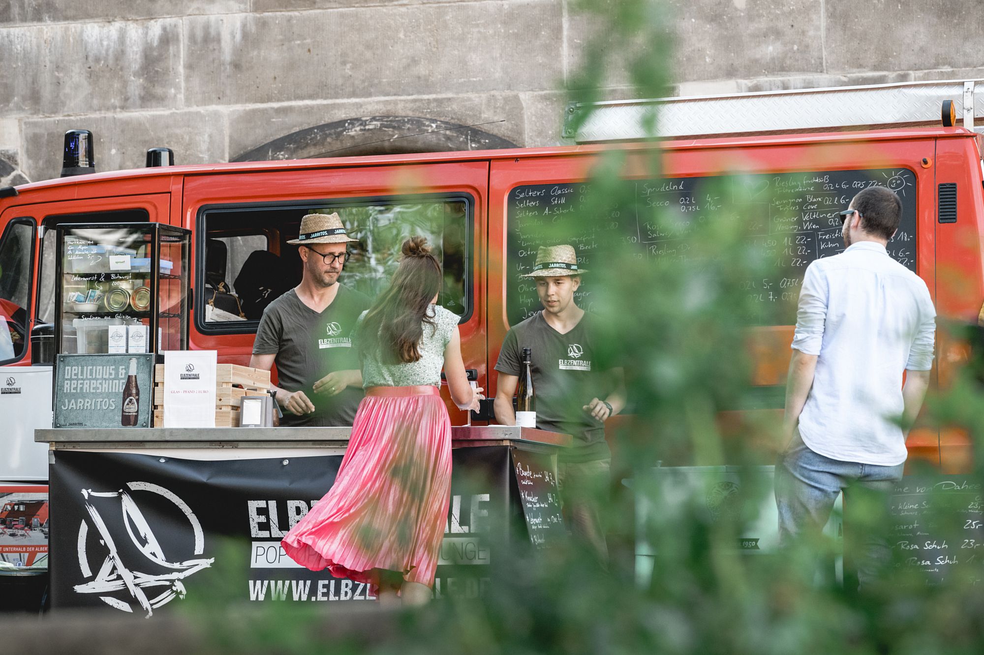 Seit Anfang Juni gibt es nun Wein aus einer Oldtimer-Feuerwehr am Elbufer. Die Feuerwehr hat er dem Kaffee-Röster Stefan Meyer-Götz abgeluchst, bei dem stand sie ungenutzt auf dem Hof. Die Pop-Up-Weinbar wird vorerst bis Ende September am Fuße der Albertbrücke stehen.
