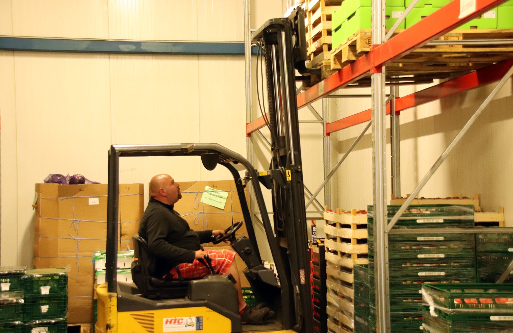 Das Geschäft ist schnell, Obst und Gemüse kann nicht lange gelagert werden. Ein Staplerfahrer bringt einige Paletten ins Kühlhaus, die werden am nächsten Tag verkauft. Sjors bezieht einen großen Teil der Ware aus Sachsen, aber auch aus Spanien, Holland und Italien.