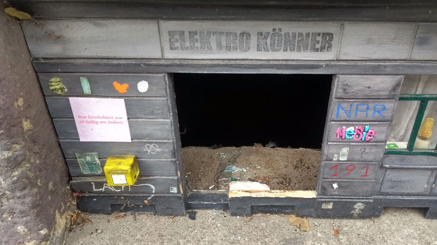 Im wohl kleinsten und schönsten Elektrofachgeschäft der Welt wurde eingebrochen. Bei Elektro-Könner, einer Miniaturinstallation auf der Sebnitzer Straße haben bislang Unbekannte, die komplette Ladentür und das Schaufenster eingetreten und herausgebrochen. In der winzigen Fassade klafft nun ein trauriges Loch.