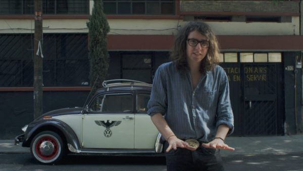 Miguel Ferráez reist durch Mexiko-Stadt und zitiert vor verschiedenen Orten mit deutscher Assoziation aus dem Integrationskurs „Leben in Deutschland“.