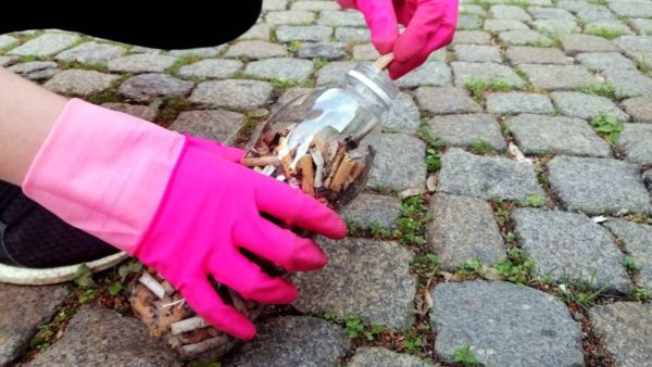 Und seitdem immer wieder. Als nach einer Umweltdemo dasselbe Ziel anstand, aber kein Müll weit und breit zu finden war, stach stattdessen ein anderes Problemkind der Stadt ins Auge: Die Unmengen an Zigarettenfilter auf der Straße. Und so begann die Mission der „Pinken Hände“.