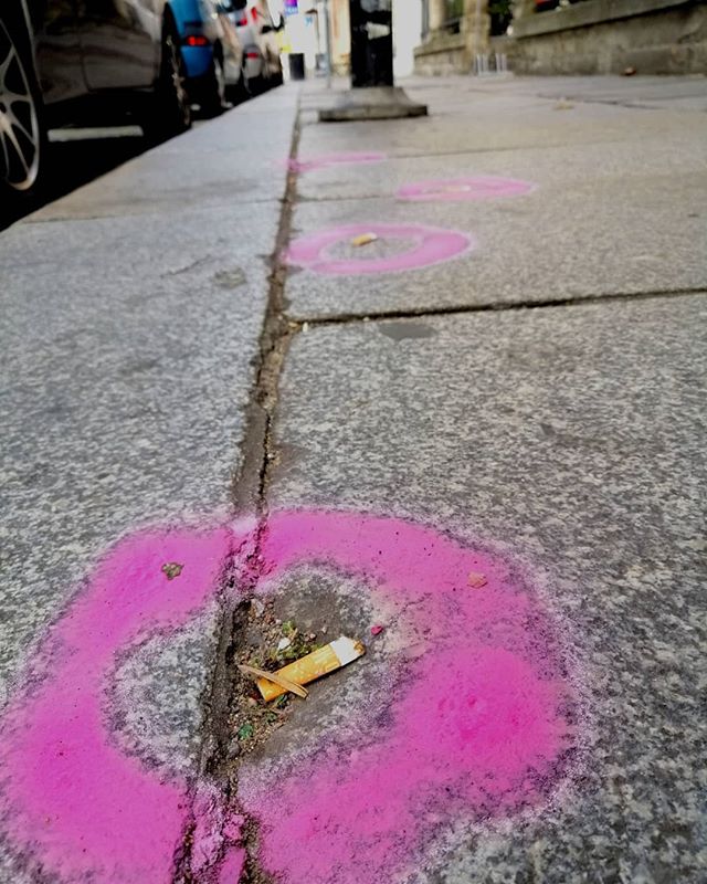 Nebenbei gesagt, pinkfarbene Kreise auf Gehwege zu sprühen, dürfte auch nicht besonders gut für die Umwelt sein und stellt ebenfalls eine Ordnungswidrigkeit dar.