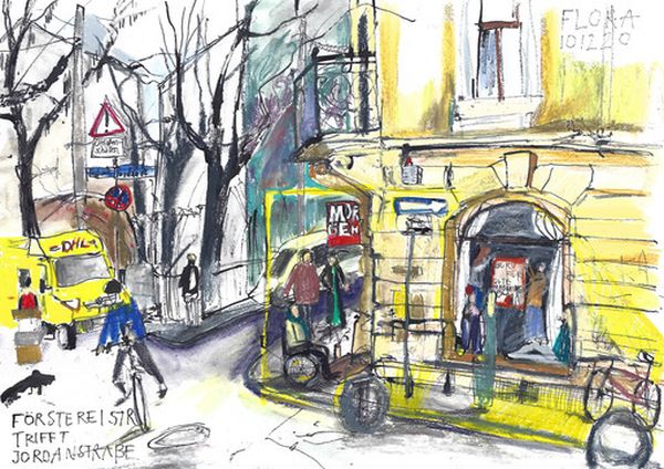 An der Ecke, an der die Jordanstraße und Förstereistraße zusammentreffen, befindet sich ein kleiner Raum mit großen Schaufenstern und schmucken Fliesen. Was mal eine Boutique war, mal ein Späti, ist jetzt nur noch ein leerer Raum – für alle. An dieser Ecke kommen Menschen und Ideen zusammen.