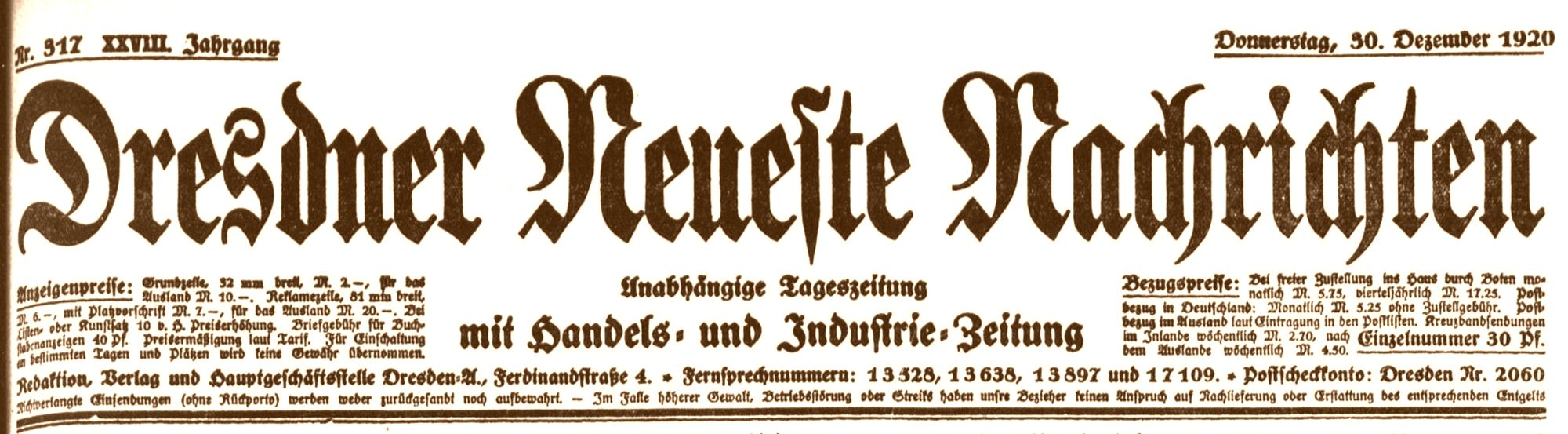 Unter der Rubrik „Vor 100 Jahren“ veröffentlichen wir in loser Reihenfolge Anekdoten aus dem Leben, Handeln und Denken von Uroma und Uropa. Dafür hat der Dresdner Schriftsteller und Journalist Heinz Kulb die Zeitungsarchive in der Sächsischen Landes- und Universitätsbibliothek durchstöbert.