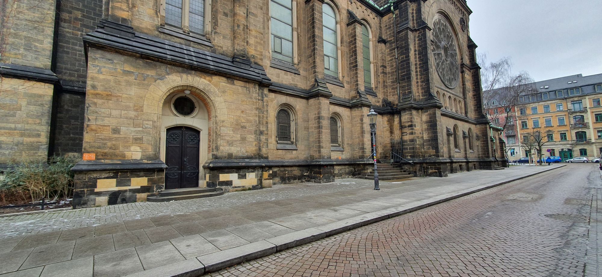 Unterdessen sieht die Wand der Martin-Luther-Kirche ohne Tauschschrank zwar sauber, aber auch ziemlich unbunt aus.