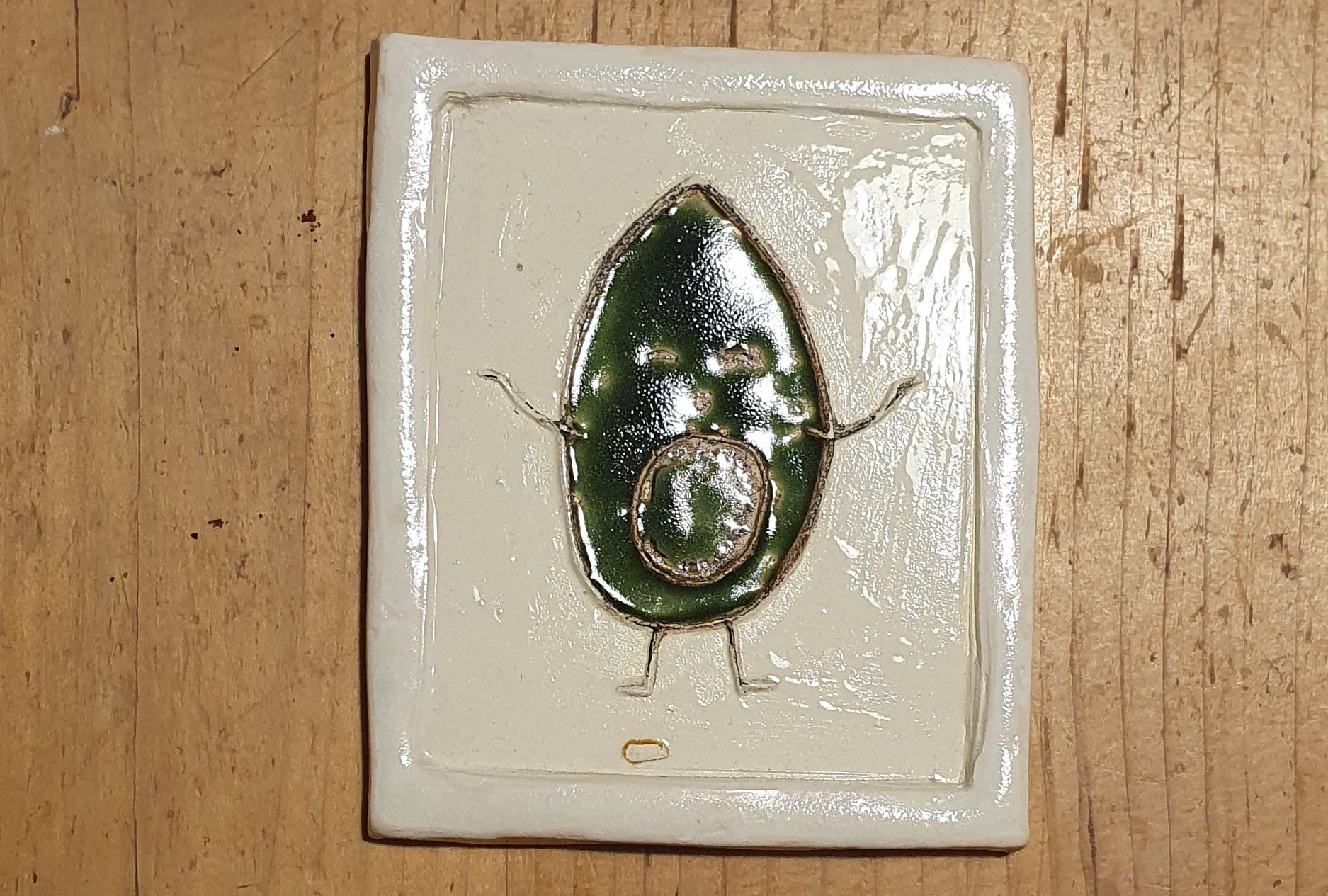 Mit einem scharfen Messer schneidet sie nun die Roh-Fliese aus. „Jetzt muss ich sie noch brennen, das ist aktuell etwas schwierig, da die meisten Töpfer wegen der Corona-Beschränkungen geschlossen sind“, sagt sie. Nachdem Brennen wird die Fliese angemalt und glasiert.