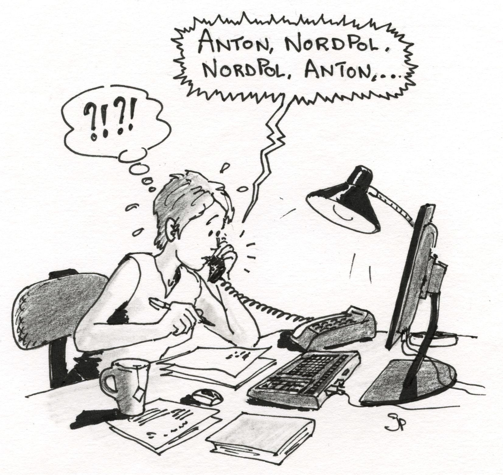 Einige Zeit später fiel mir dann auf, dass alle Anrufer die gleichen Vornamen verwendeten. Mit diesem komischen „Nordpol“ dazwischen. Wie konnten alle auf „Nordpol“ gekommen sein, um das „N“ zu buchstabieren? Warum nicht „Norbert“ oder „Natascha“?