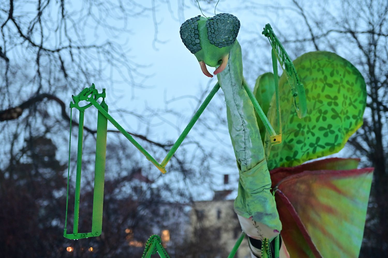 Der berühmteste Fisch Dresdens hat ein Geschwisterchen bekommen. Am Albertplatz steht seit heute eine Gottesanbeterin auf ziemlich dünnen grünen Beinen. Die Künstlergruppe HRB+C hat ein zweites Objekt in die Welt gesetzt.