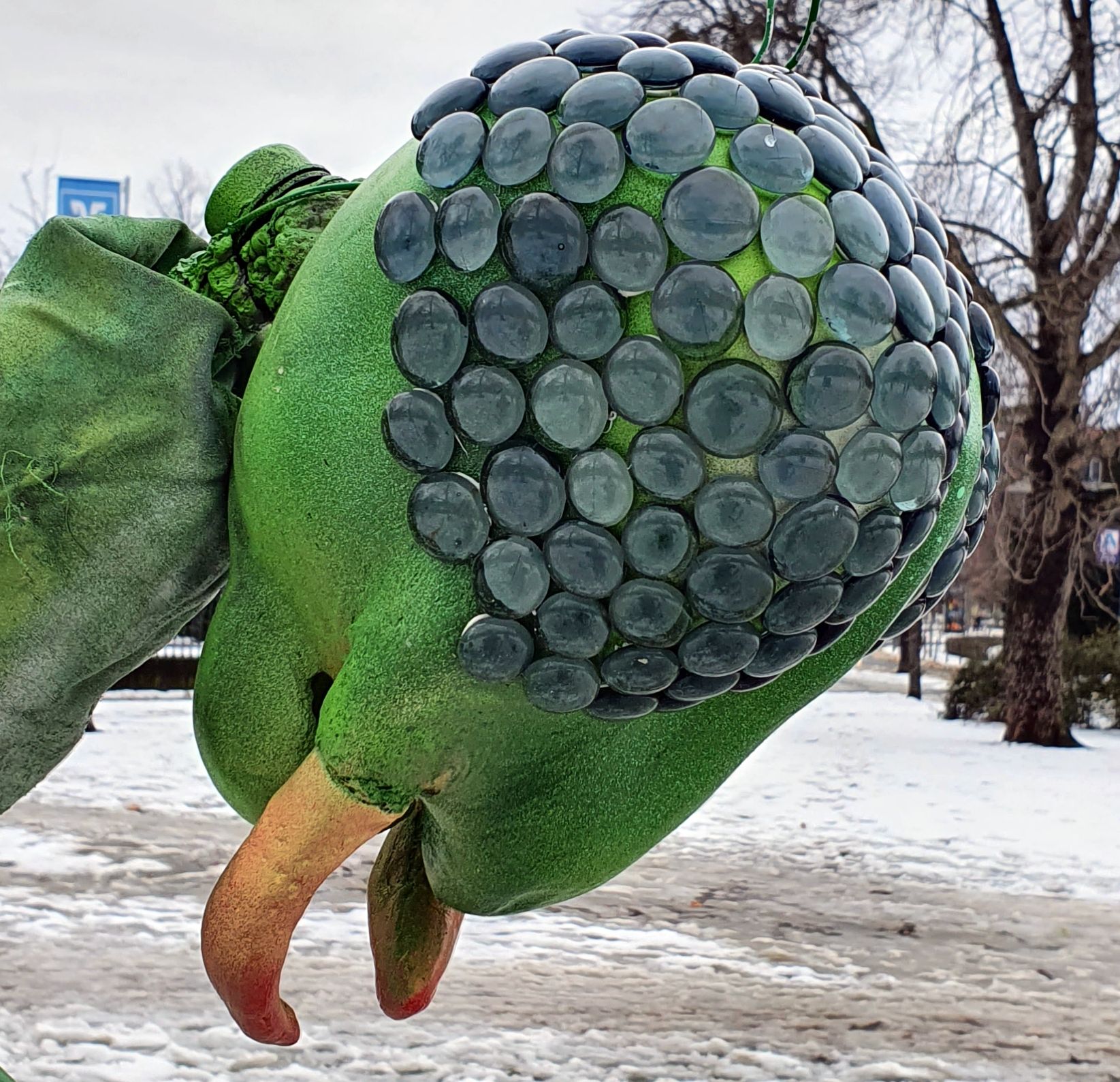 Wieder haben sie mit verschiedenen Materialien gearbeitet, diesmal mit Stoff, Fahrradteilen, Werkzeugen, Gartengeräten und Plaste. Auf einem Schild steht der bekannte Spruch „do not touch“ – nicht berühren. Doch statt der Bitte, nicht zu füttern, wie beim Fisch am Elbestrand, weisen die Künstler*innen hier explizit darauf hin, dass die riesige Heuschrecke „scharf und bissig“ ist.