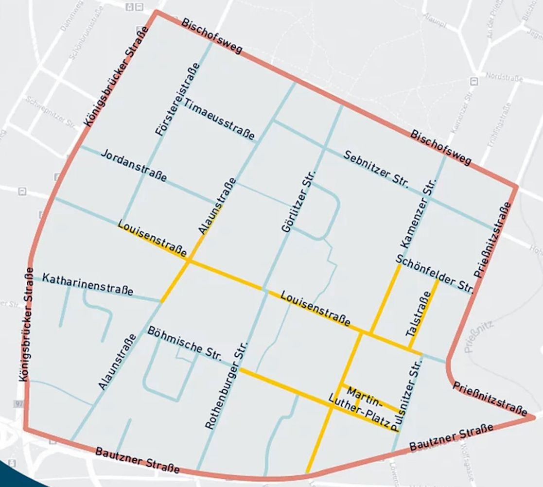 Damit hat sich das Projekt gegenüber bisherigen Planungen erheblich gewandelt. Während in der Planungsphase 2019 bis Anfang 2020 noch von einer nahezu komplett autofreien Zone die Rede war, wurde dieses Konzept im Laufe der Zeit verändert. Ursprünglich sollte die gesamte Äußere Neustadt für eine Woche für den Autoverkehr gesperrt werden. Im Laufe der Diskussion wurden immer mehr Ausnahmen aufgenommen. Nun ist aus einem autofreien, ein verkehrsberuhigter Bereich mit Parkverbotszonen geworden.