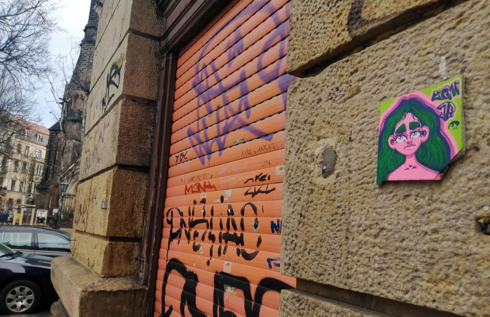 Auf der Martin-Luther-Straße, gleich neben dem Stoffwechsel, prangt diese kleine Schönheit. Unschwer zu erkennen ist die Fliese ein Produkt des Künstlers Jemy bzw. JP. Sein oder ihr Werk haben wir schon öfter vorgestellt. Zuletzt die barbusige Dreiäugige am anderen Ende des Martin-Luther-Platzes, die jedoch zwischenzeitlich entfernt wurde.