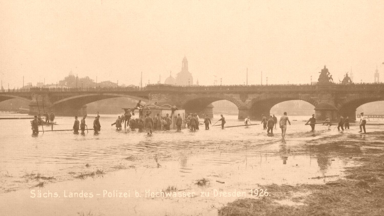 Vor der Übigauer Schiffswerft lagen Dampfer, teils im Strom verankert, teils an die Werkstattgebäude herangetrieben. Überflutet waren auch der neue städtische Flugplatz in Kaditz, ebenso wie Häuser und Gärten an der Weißeritzmündung. Trotz großer Gefahren versuchten Kinder sogenanntes „Strandgut“ zu bergen. Die Uferzone wurde zum Abenteuerspielplatz.