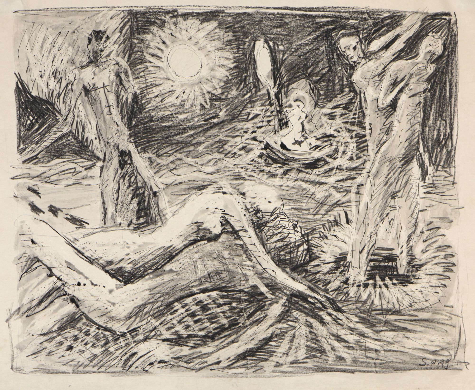 Es ist gewiss ein möglicher aber nur versuchter Zugang. Mir scheint, die weibliche Existenz in der Körperlandschaft des Frauenaktes als Katalysator bzw. Emulgator beim Hervorbringen von Umweltzielen zur materiellen und geistigen Entwicklung zu sein.