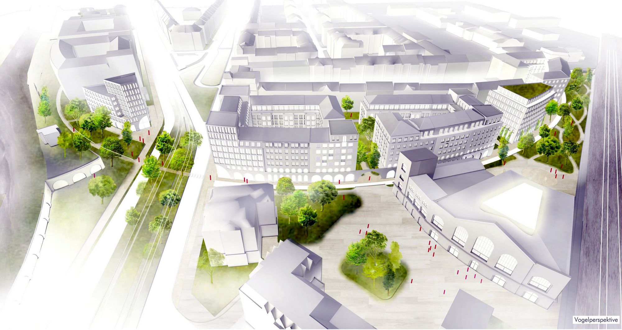 Für das Gelände gab es ein sogenanntes Werkstattverfahren mit mehreren Entwürfen, das Architekturbüro TSSB hat diesen Wettbewerb gewonnen und nach den Entwürfen wird nun das weitere Verfahren bestimmt. Gewissermaßen parallel zum alten Gleisbogen wird die neue Straße entstehen, die dann auf der Lößnitzstraße gegenüber dem Drewag-Gelände endet. Entlang dieser Straße sind auf der nördlichen Seite vier Neubaublöcke geplant. Die südliche Seite soll zum Bahndamm hin begrünt werden.