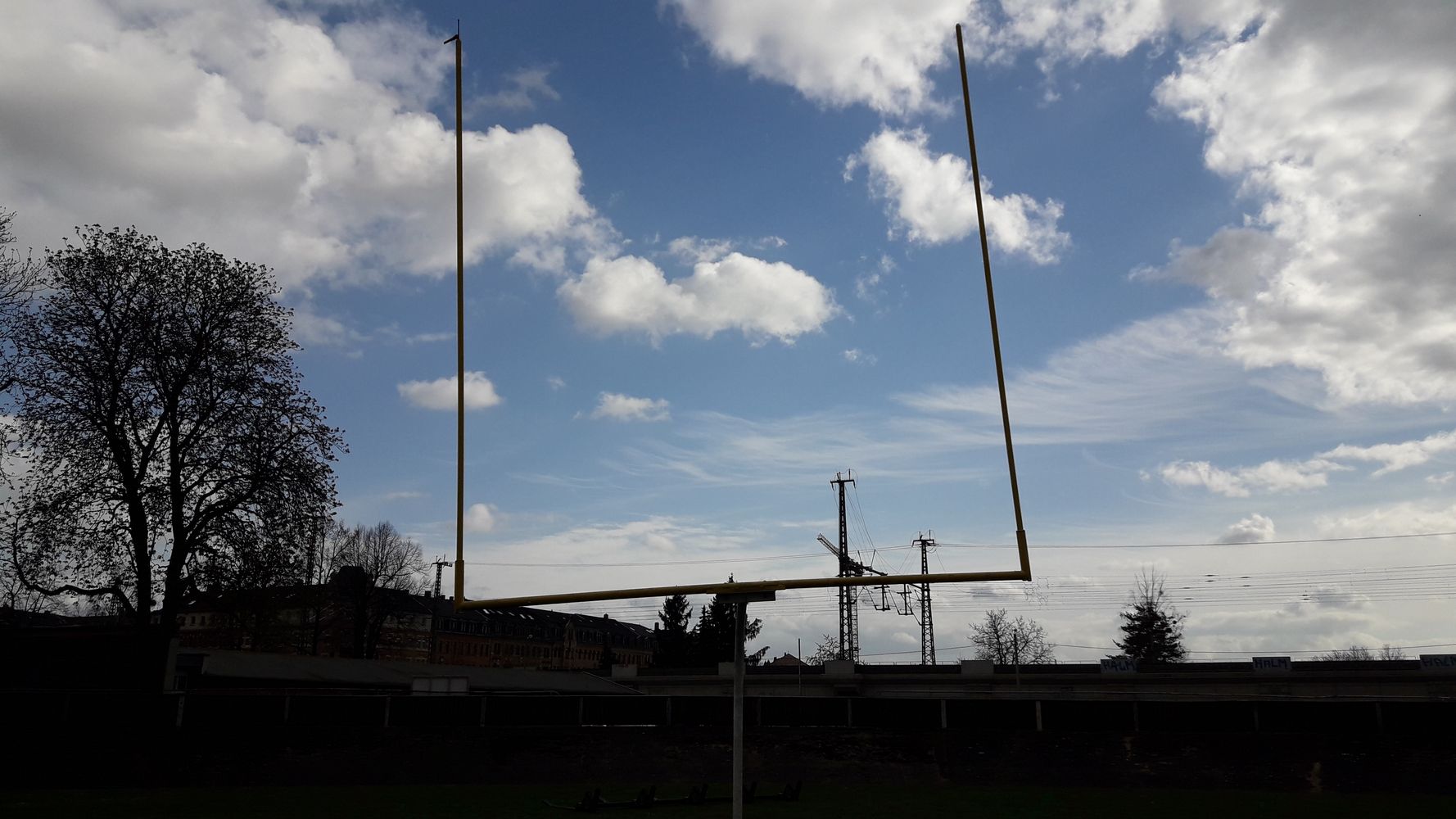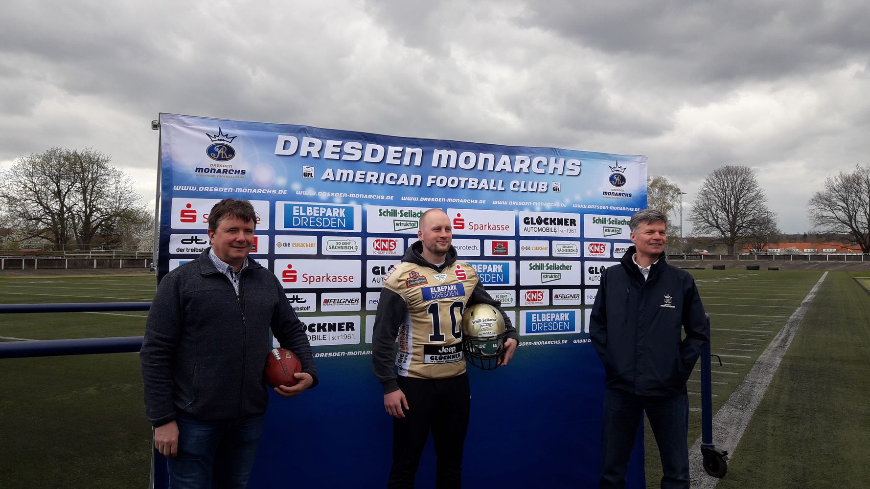 Ein roter Zug rattert über die Bahntrasse neben dem Trainingsgelände der Dresden Monarchs. Es liegt verwaist da, ungeduldig, wartend darauf, bespielt zu werden.