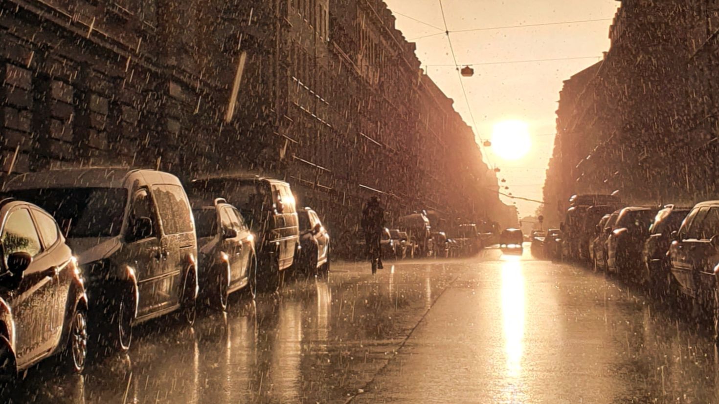 Wenig später brach dann ein heftiger Platzregen aus und die immer noch strahlende Abendsonne bescherte der Neustadt einen Regenbogen.