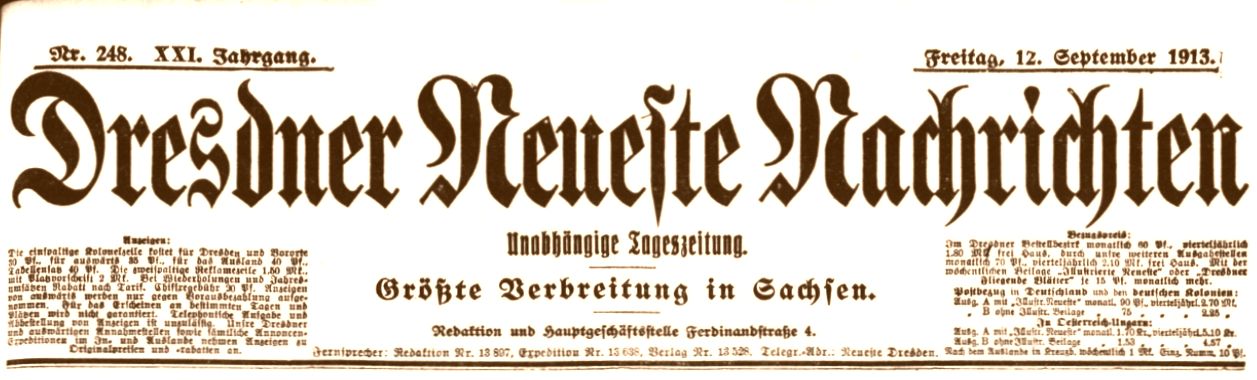 Unter der Rubrik „Vor 100 Jahren“ veröffentlichen wir in loser Reihenfolge Anekdoten aus dem Leben, Handeln und Denken von Uroma und Uropa. Dafür hat der Dresdner Schriftsteller und Journalist Heinz Kulb die Zeitungsarchive in der Sächsischen Landes- und Universitätsbibliothek durchstöbert.