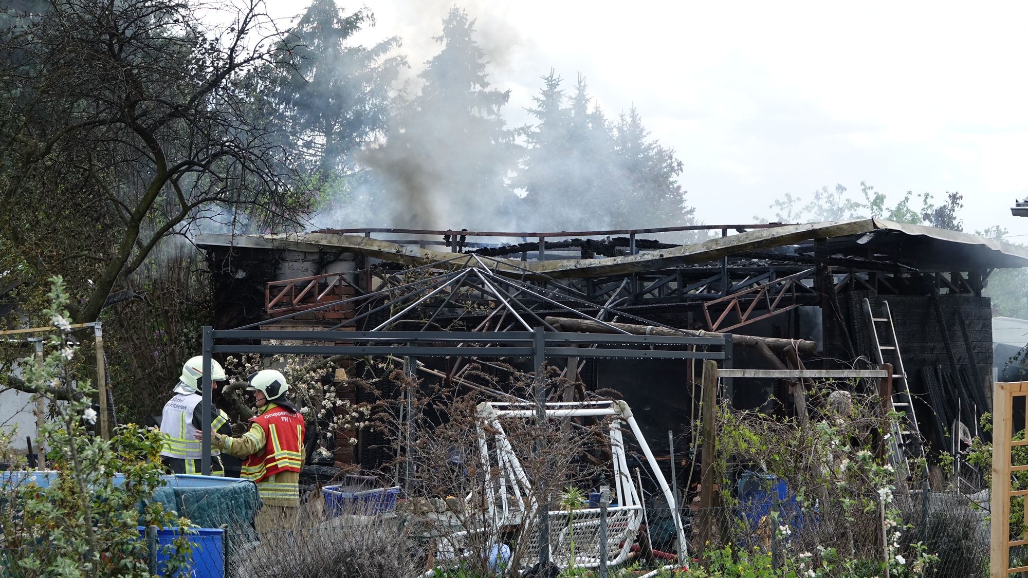 Die Rauchsäule war weithin zu sehen. Die Kleingärtner*innen halfen der Feuerwehr, indem sie ihr den Weg durch das verzweiget Wegesystem der Anlage wiesen. Mehrere Trupps mit Atemschutz löschten mit zwei Strahlrohren das Feuer. Da in der Hellersiedlung keine Hydranten stehen, musste das Löschwasser aus der nahen Feuerwache herangeschafft werden.