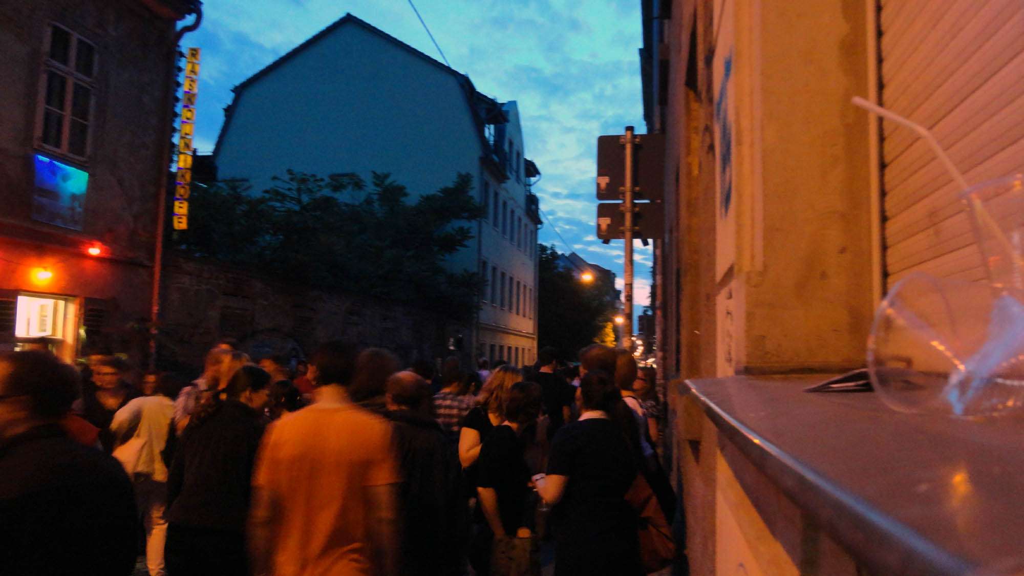 Während die BRN-Feierlichkeiten am Nachmittag noch ganz gemütlich begonnen haben, war es spätestens bei Sonnenuntergang so richtig voll. Derartigen Stau auf der oberen Görlitzer zum Beispiel habe ich an einem Freitag noch nicht erlebt. Aber der Reihe nach.