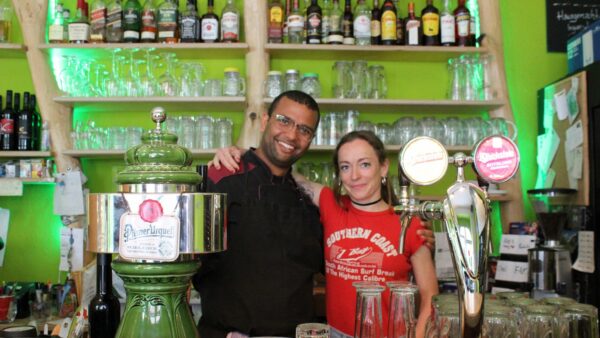 Während des Lockdowns wurde nicht nur ein neues Küchenteam zusammengestellt, dieses hat auch die Speisekarte des Lokals in der geschlossenen Zeit umgekrempelt. Lukas, der als neuer Küchenchef von Inhaberin Wiebke eingestellt wurde, hat mit seinem Team dem Menü einen orientalischen Anstrich gegeben. Weil das vor dem Lockdown schon gut ankam, steht jetzt inspiriert von der marokkanischen Küche Köfte und Falafel, sowie veganes marokkanisches „Hühnchen“ auf dem Plan. Das Fladenbrot kommt von Rodi, dem Bäcker von der Dr.-Friedrich-Wolf-Straße.