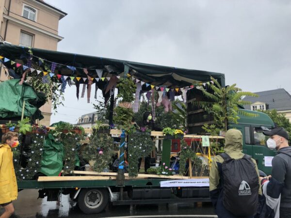 Die Redebeiträge drehten sich um verschiedenste Themen. Während der Gesundheits-Floor auf den Kapitalismus im Gesundheitswesen aufmerksam machte, diskutierten die Redner*innen des Klimawagens mit „Mutter Natur“ – einer Stimme aus dem Off.