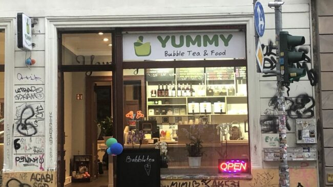 Seit Ende September befindet sich mit „Yummy“ ein neuer Bubble Tea-Laden in der Rothenburger Straße – direkt gegenüber von dem Fairtrade-Geschäft Tranquillo und damit unweit von der schiefen Ecke entfernt.