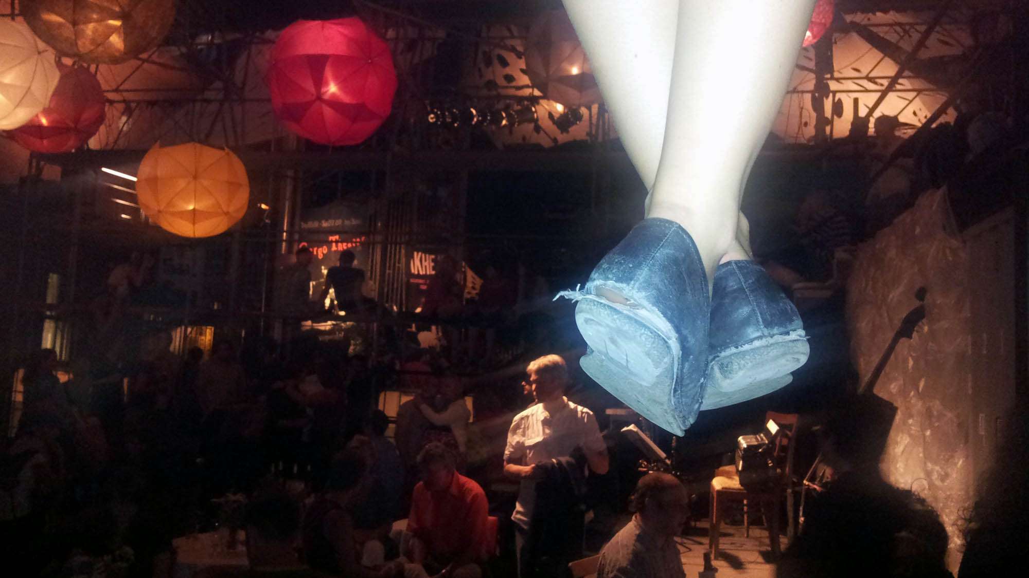 Wieder draußen sind wir stark motiviert, noch eine zweite Schau zu besuchen. Doch überall, überall diese Schlangen, dieses Gedränge. Dabei ist heute ein ganz normaler Dienstag, müssen die nicht alle mal ins Bett, weil morgen zur Arbeit? Wir lassen uns nieder und beobachten das vorbeiziehende Volk. Junge Burschen, deren T-Shirts am Oberarm spannen und junge Mädel, die hochhackig durch den Kies stöckeln. Dazwischen ein paar wenige im alternativen Neustadtlook. Was ist los, was hat sich verändert? Noch vor ein paar Jahren waren die Buden der allabendliche Treff der Neustädter. Hier verabredete man sich, hier wurde geschnackt und getratscht. Aber heute kenne ich kaum jemanden. Bin ich zu alt dafür? Ist das der Preis des Erfolges? Wo ist der Notausgang?