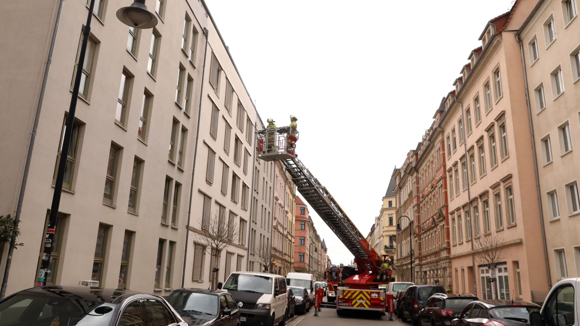 Dort drohte eine Satellitenschüssel vom Dach eines Wohngebäudes zu stürzen. Die Kollegen forderten die Drehleiter der Feuer- und Rettungswache Löbtau nach, weil eine gefahrlose Bergung mit den vorhandenen Mitteln nicht möglich war. Durch das besondere Knickelement der Drehleiter aus Löbtau gelang es den Einsatzkräften, gefahrlos an das absturzgefährdete Objekt zu gelangen und es sicher nach unten zu bringen.