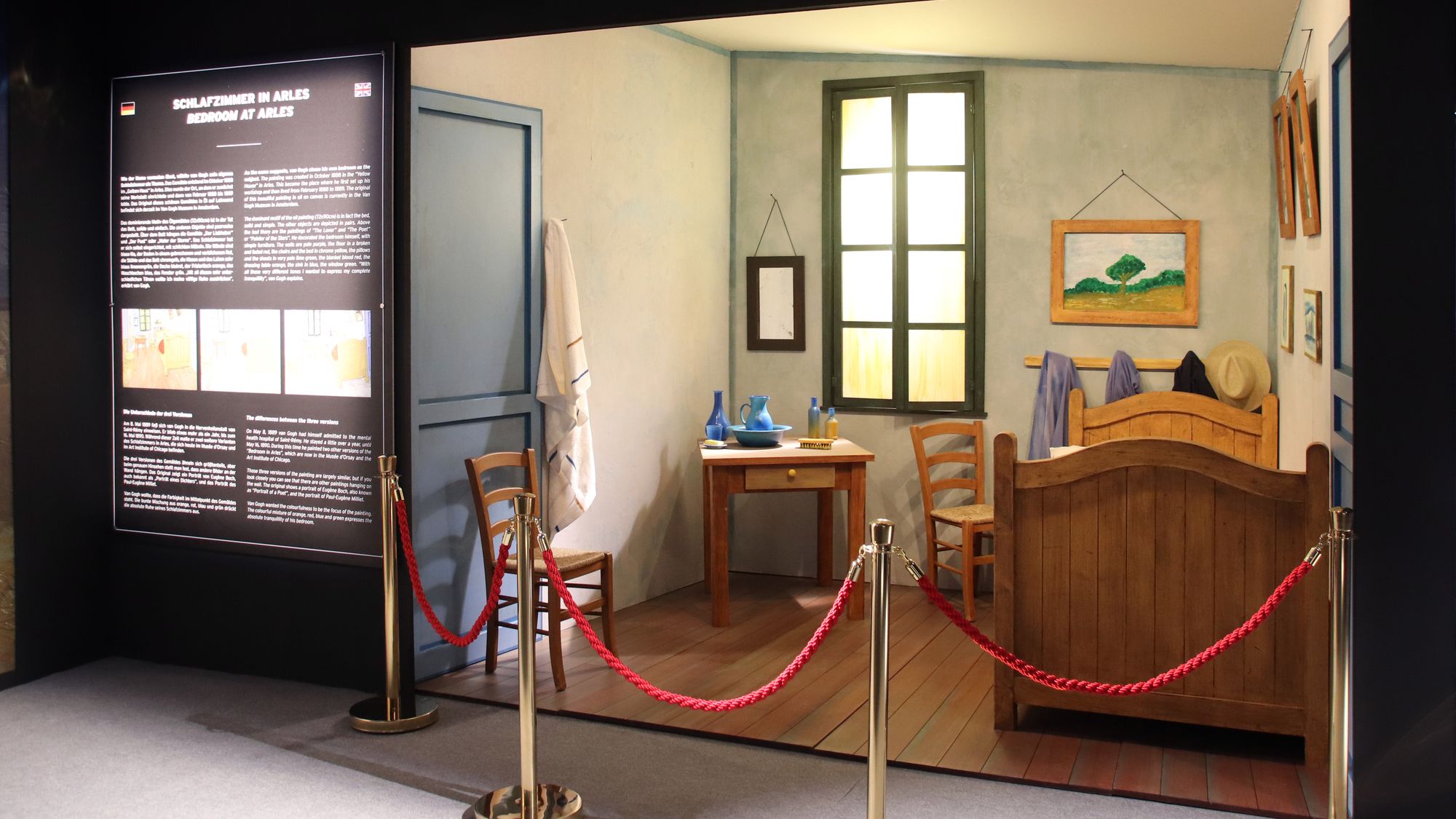 Herz der Ausstellung ist ein riesiger Raum mit einer multimediale Lichtinstallation. Die Bilder fallen von den Wänden und aus ihrem Rahmen, wandern durch den ganzen Raum und nehmen die Besucher*innen mit auf eine Reise durch die Farbwelt des Künstlers. Van Goghs Werke wie die weltberühmten „Sonnenblumen“, „Das Nachtcafé“, die „Sternennacht“, „Die Kartoffelesser“ oder das „Schlafzimmer in Arles“ werden aus einer ganz neuen Perspektive erlebbar. Man befindet sich inmitten der Gemälde, wird Teil der Szenerie und kann in Licht und Ton versinken.
