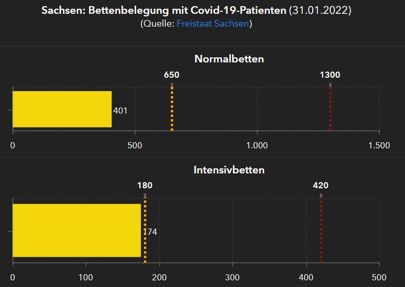 Alle Regelungen gelten, solange die Belastungsgrenzen in den Krankenhäusern nicht erreicht werden. Also 1.300 auf den Normal- bzw. 420 auf den Intensivstationen. Den aktuellen Stand (401 und 174 am Dienstag) zeigt die Dresdner Corona-Ampel an. Details der geplanten Verordnung auf sachsen.de.