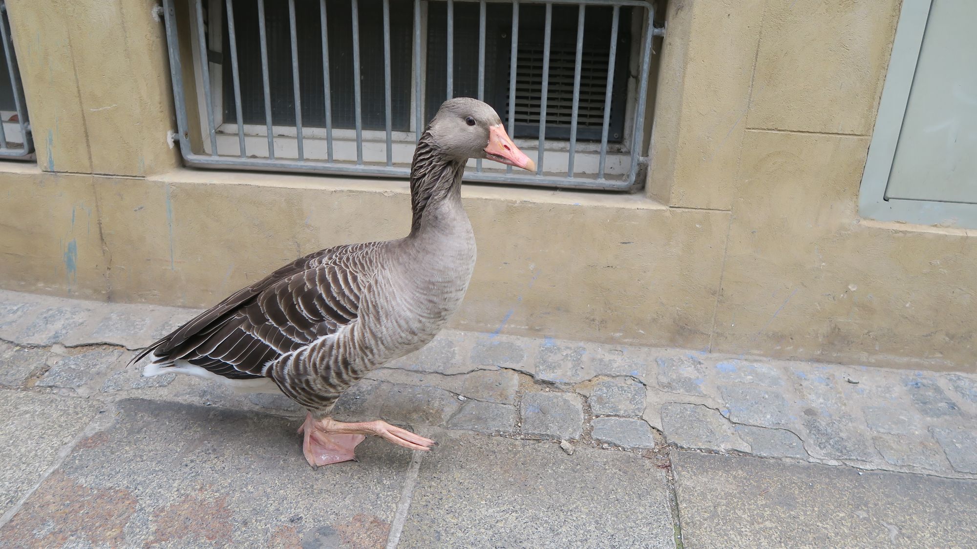 wann und wo wurde denn die gefiederte Spaziergängerin (oder „er“, falls es ein Ganter ist) gesehen? Eine interessante Begebenheit!