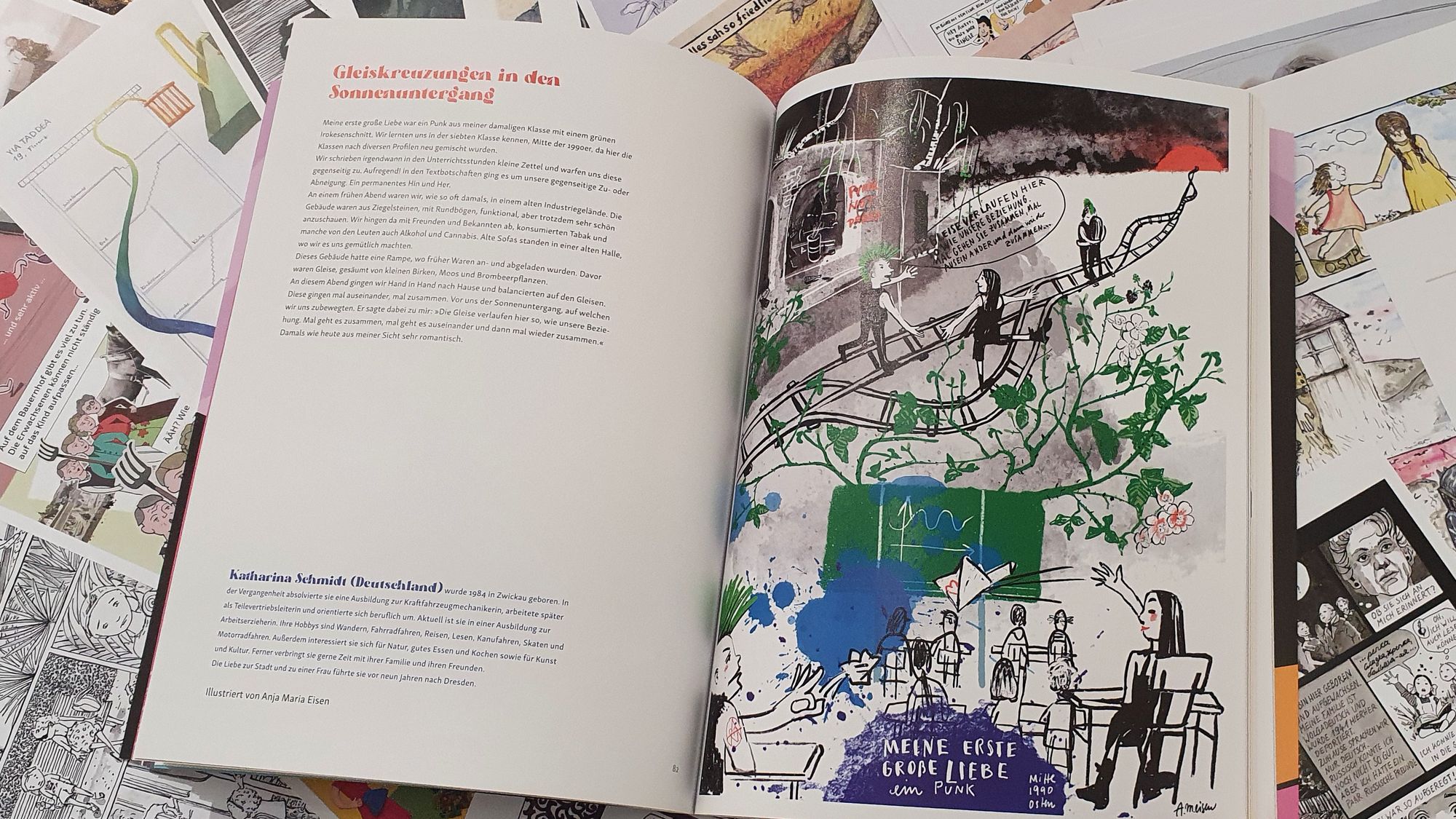 „Wir haben in den vergangenen Jahren in zahlreichen Kunstprojekten wahre Geschichten von Frauen gesammelt“, sagt Nazanin. Eines dieser Projekte war ein Comic-Kurs. Die teilnehmenden Frauen zeichneten Episoden aus ihrem Leben. 2021 haben die beiden dann Dresdner Künstlerinnen und Illustratorinnen animiert, aus einer Auswahl dieser Erzählungen insgesamt 47 Comics entstehen zu lassen. Mit tatkräftiger Unterstützung des Kultur Aktiv und Leitung von Verena Böll und Janina Kracht wurde das Buch nun zusammengetragen. Erschienen ist es im Sandstein-Verlag. Elena: „Das ist das Ergebnis unserer vierjährigen Projektarbeit.“