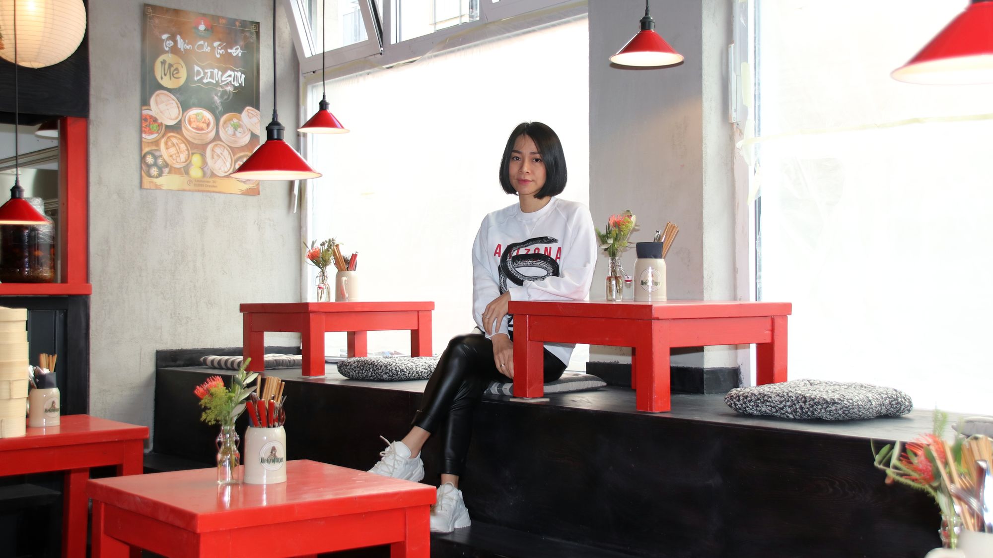 Das kleine Lädchen ist sparsam eingerichtet, man fühlt sich ein bisschen wie an einem Grillstand auf der Straße. Man kann sich wie im benachbarten Anamit direkt ins Schaufenster setzen und den vorbeilaufenden Leuten auf die Füße gucken.