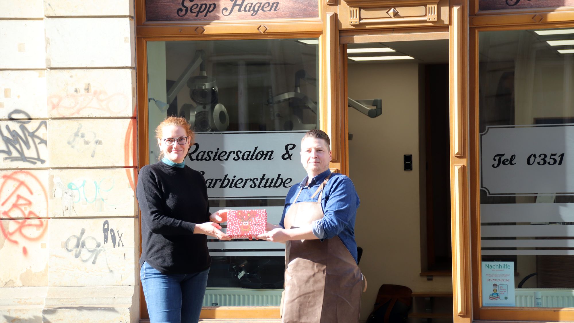 Vor dem letzten Weihnachtsfest stand für den Friseurmeister Sepp Baumgartl-Hagen aus der Dresdner Neustadt fest, dass er seinen Kunden kein Weihnachtspräsent überreicht, sondern das Geld lieber einem Verein zukommen lässt.