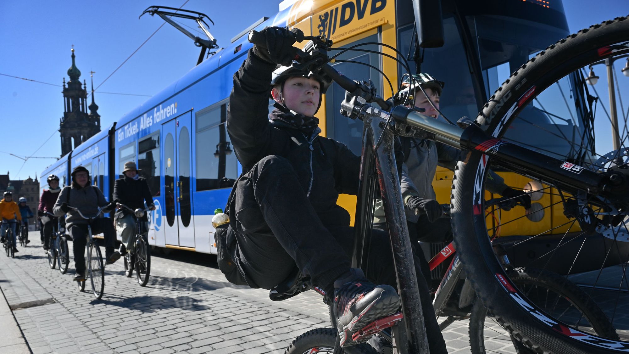 „Auf der Augustusbrücke ist jetzt dank Sperrung für den Kfz-Verkehr wunderbar viel Platz für Radfahrerinnen und Radfahrer“, freut sich Edwin Seifert, Geschäftsführer des ADFC Dresden. „Hier wurde einmal konsequent unsere alte Forderung nach ‚Mehr Platz fürs Rad‘ umgesetzt. Auch auf dem Kopfsteinpflaster lässt sich dank enger Verlegung der Steine und teilweiser Einbetonierung sehr gut radfahren.“