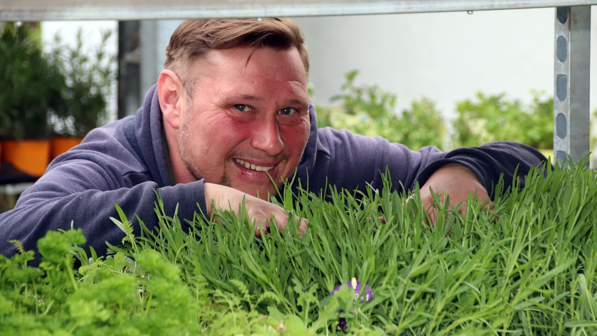 Das Trödelgelände am Alten Heizhaus an der Stetzscher Straße verwandelt sich ab Sonnabend, dem 30. April wieder in ein riesiges Garten-Center. Sven Hellmich, der alte Trödelbarde, schaut sich um. Tausende Pflanzen haben er und seine Mitarbeiter*innen in die Regale geräumt.