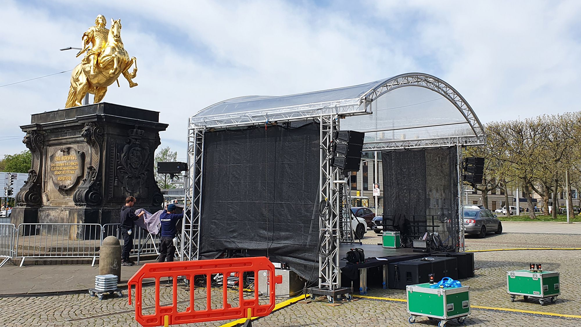 Von heute bis Sonntag findet auf der Hauptstraße und dem Neustädter Markt der „Neustädter Frühling“ statt. Die nach eigenen Angaben „schönste Einkaufs- und Flaniermeile Dresdens“, die Hauptstraße, lädt zum Familienfest. Am Vormittag wurde schon heftig gewerkelt. Die Bühne am Reiterdenkmal des Gold-Augusts steht bereits und auch ganz viele Buden für Durstige und Hungrige stehen bereit.
