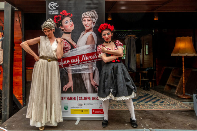Das sind die beiden Gründer der Serkowitzer Volksoper, die auf der Zirkuswagenbühne in der Sommerwirtschaft Saloppe den Zuschauenden beweisen will, dass Oper so seriös ist, wie man sich das in den Köpfen vorstellt – aber viel mehr Spaß machen kann, als der gemeine Nichtopernfan zu denken wagt.