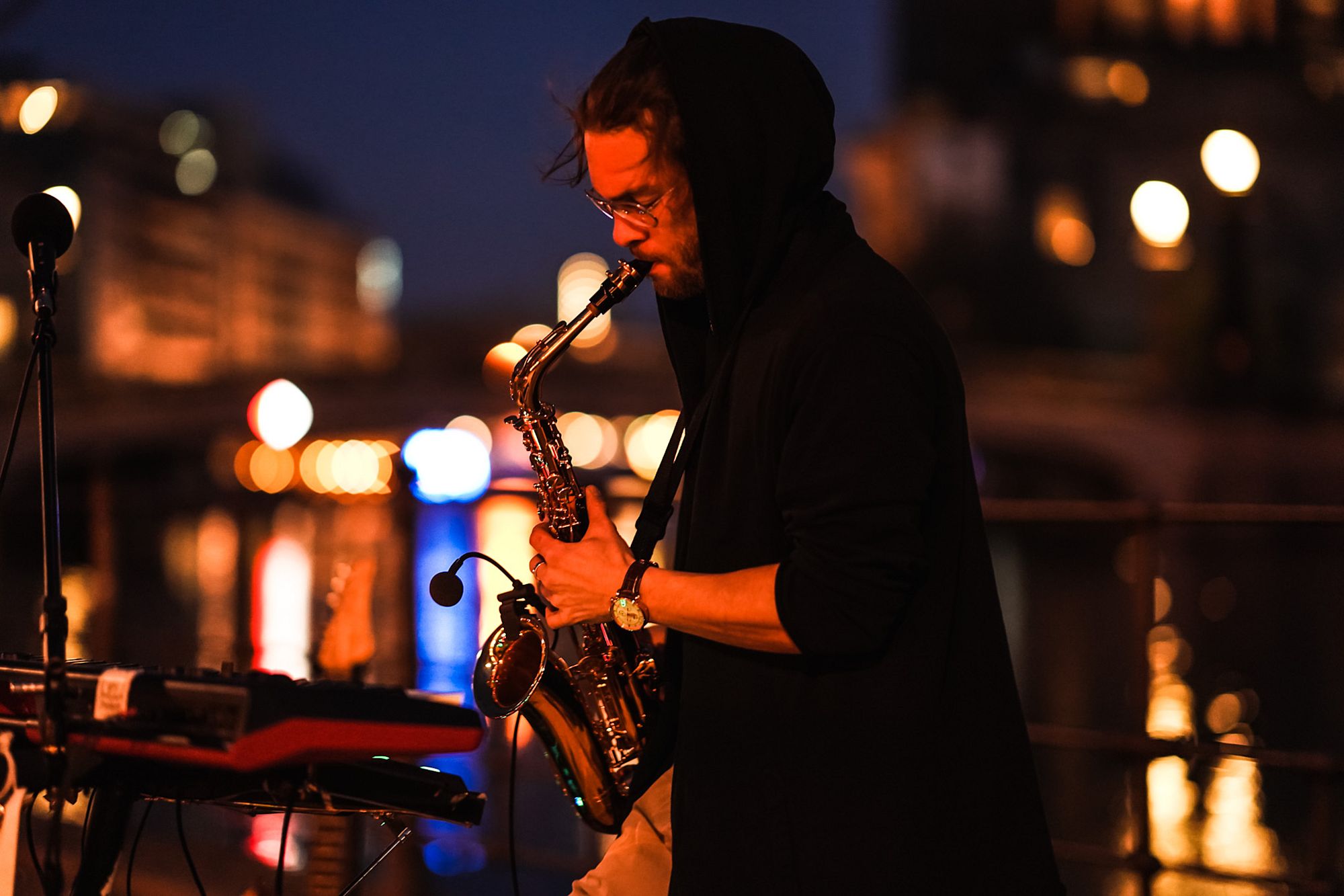 Inzwischen hat Ju auch schon zwei Solo-Alben veröffentlicht. „Ein neues Album ist in Planung, also eigentlich fast fertig“, sagt er. Das zieht sich gerade noch ein bisschen, da sich nun nach Ende der Pandemie die Anfragen für Auftritte häufen. Ju ist ein Multiinstrumentalist. Bei seinen Auftritten hat er alles dabei: die E-Gitarre, das Saxophon, den Synthesizer, dann singt er noch und nimmt alles mit der Loopstation auf. „Daraus entsteht dann ein Sound wie von einer Band mit mehreren Musikern“, erklärt er das Konzept.