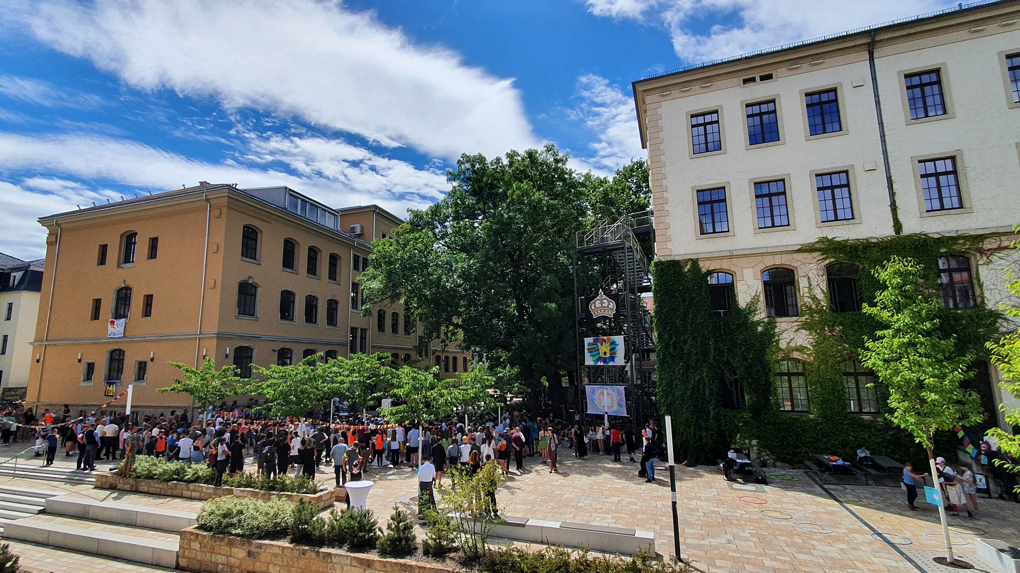 Mit einem großen Schulfest ist gestern der Abschluss der Sanierung des Gymnasiums „Dreikönigschule“ an der Louisenstraße gefeiert worden.