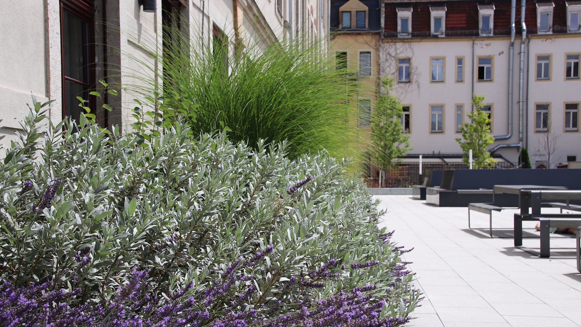 Im Hof wurde der alte Schuppen, der einst als Turnhalle diente abgerissen, dafür gibt es nun eine große Mensa und eine große Terrasse, eine neue Sporthalle steht direkt um die Ecke neben der Scheune an der Alaunstraße. Die Schule besteht aus drei einzelnen Häusern. Gänge und Klassenzimmer wurden behutsam saniert und vor allem den notwendigen Sicherheitsstandards angepasst.