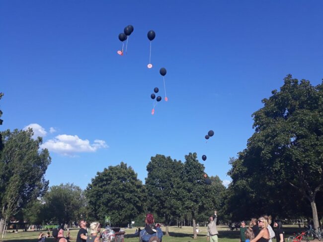 allerdings frage ich mich warum dafür luftballons in den himmel fliegen müssen… hallo? plastik? umweltverschmutzung? elbe u. priesnitz um die ecke? tiere u. vögel können daran elendig sterben.