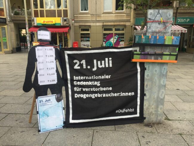 Am Donnerstag wird, wie immer am 21. Juli, international all derer gedacht, die durch den Gebrauch illegaler Drogen verstorben sind. In Dresden haben sich das Fachteam für Suchtprävention der Diakonie Dresden, die Aids Hilfe Dresden und Safe DD zusammengetan, um mit gemeinsamen Aktionen den Gedenktag zu begehen.