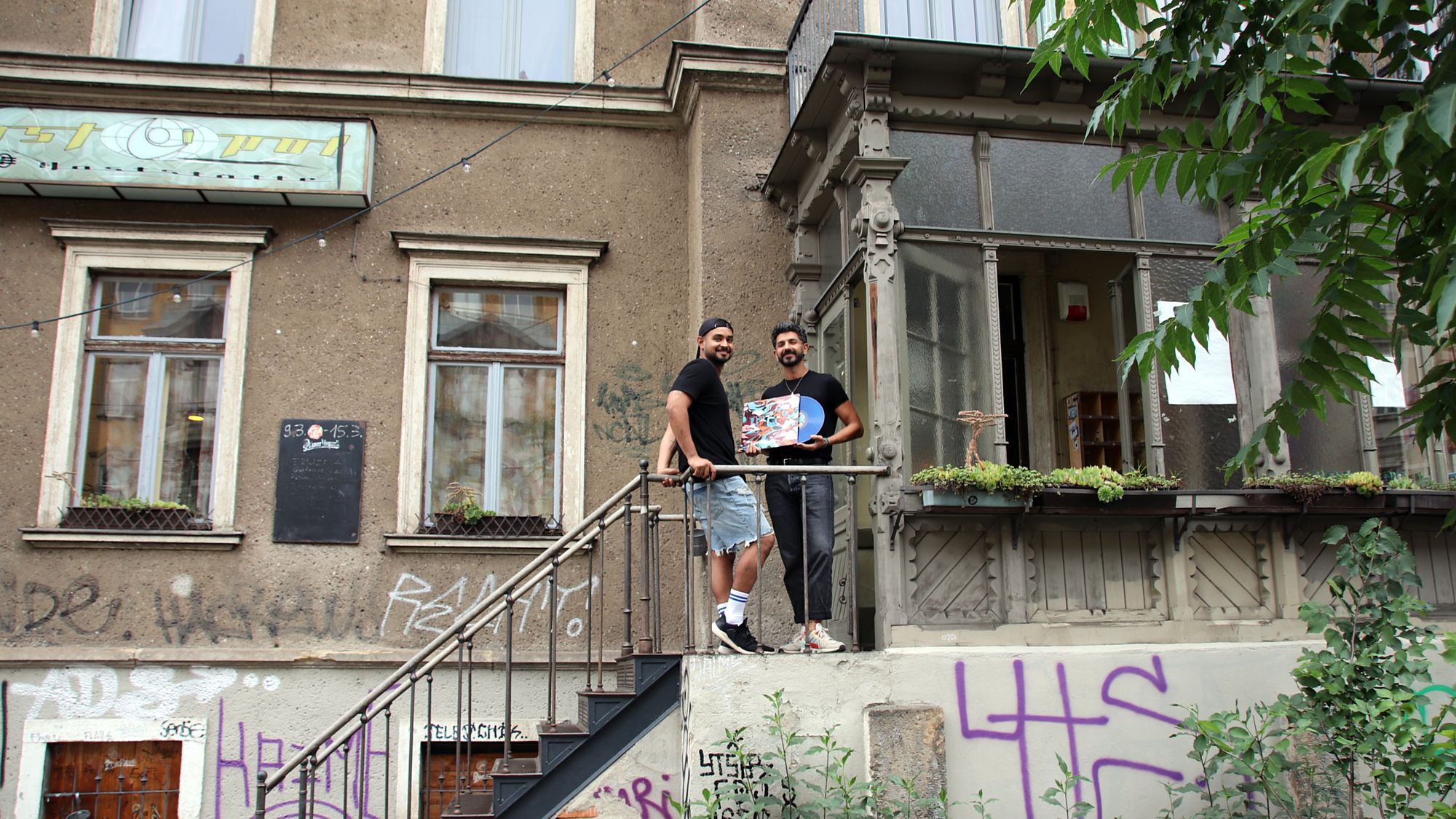 Organisiert haben die Platte, die in wunderbarem durchscheinenden blauen Vinyl erschienen ist, zwei junge Männer, die selbst auch einen Migrationshintergrund haben: Camil El Khoury und Oscar Chirinos. Beide arbeiten für Morning Glory Concerts, Camil hat zum Beispiel die „Fahrrad-Kult-Tour“ mitorganisiert. Beide haben in Sachsen ein recht großes Netzwerk, in dem sie nun nach Künstlerinnen und Künstlern gesucht haben. „Wir wollten POC aus Sachsen eine Bühne geben und ihre Musik zeigen“, sagt Camil. „Dabei ging es nicht nur um die Platte, es gab auch Workshops und ein Festival“, ergänzt Oscar.