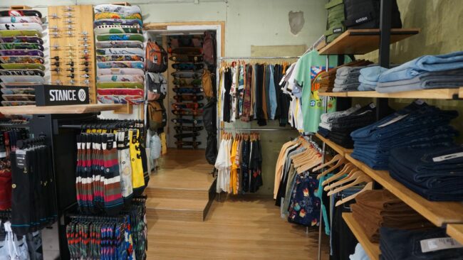 Dazu gehört der Sommertourismus, aber auch Stammkundschaft, oder eben einfach Menschen, die zufällig beim Schlendern über die Schwelle stolpern. Der Zielgruppe sind keine Grenzen gesetzt, zumal sich das Sortiment stets anpasst und weiterentwickelt. Jede Menge Streetwear und Schuhe füllen mittlerweile die Regale, sodass auch nicht rollende Kundschaft fündig wird.