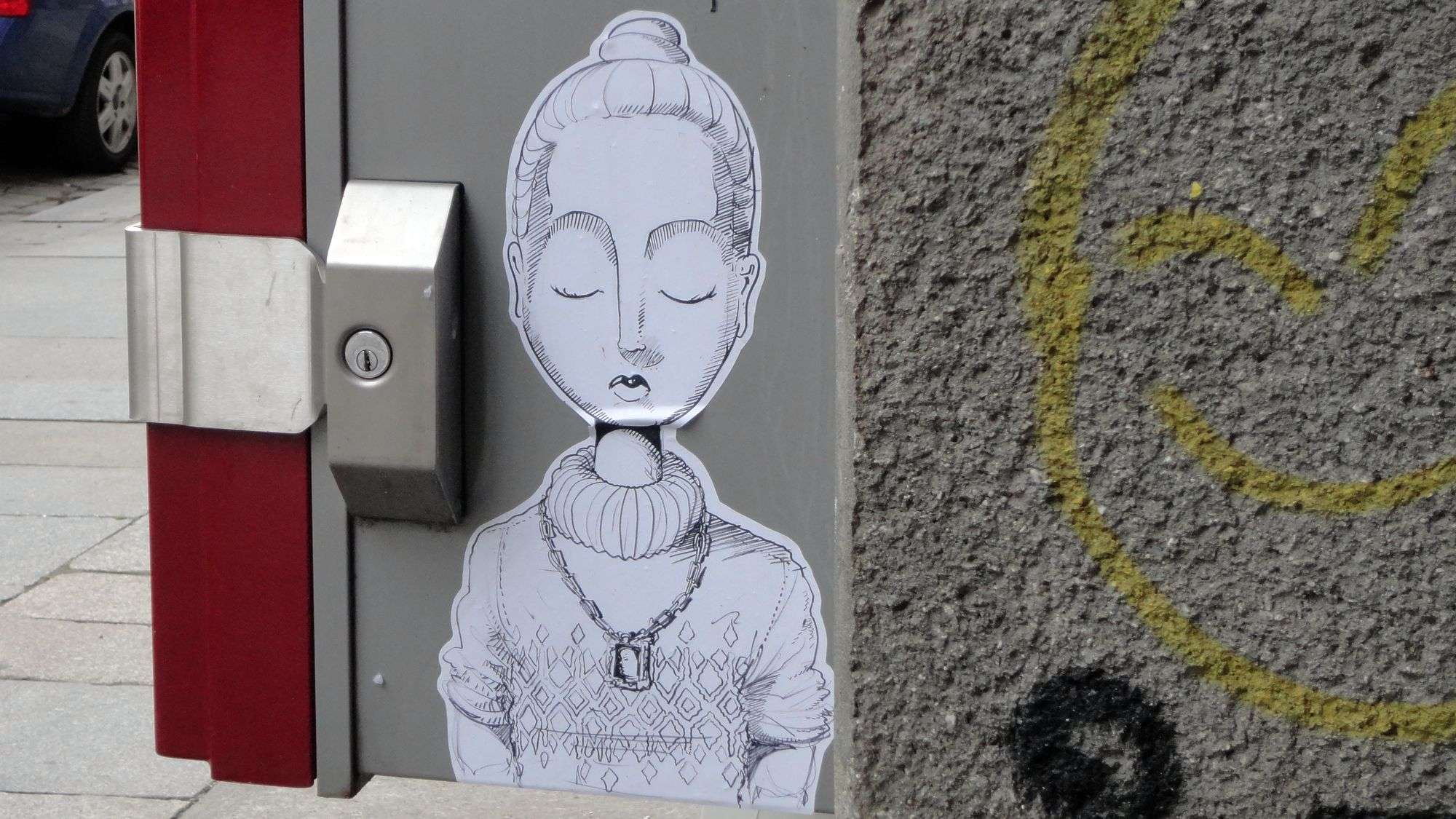 Eine Street-Art-Gruppe namens „the twenty freaks“ beklebt derzeit Wände und Objekte in der Neustadt. Die Gefährtin des bärtigen Mainzelmanns am Dammweg (Neustadt-Geflüster vom 15. September 2012) stammt von ihnen. Heute Morgen habe ich noch ein paar der sogenannten „Paste-Up“ entdeckt.