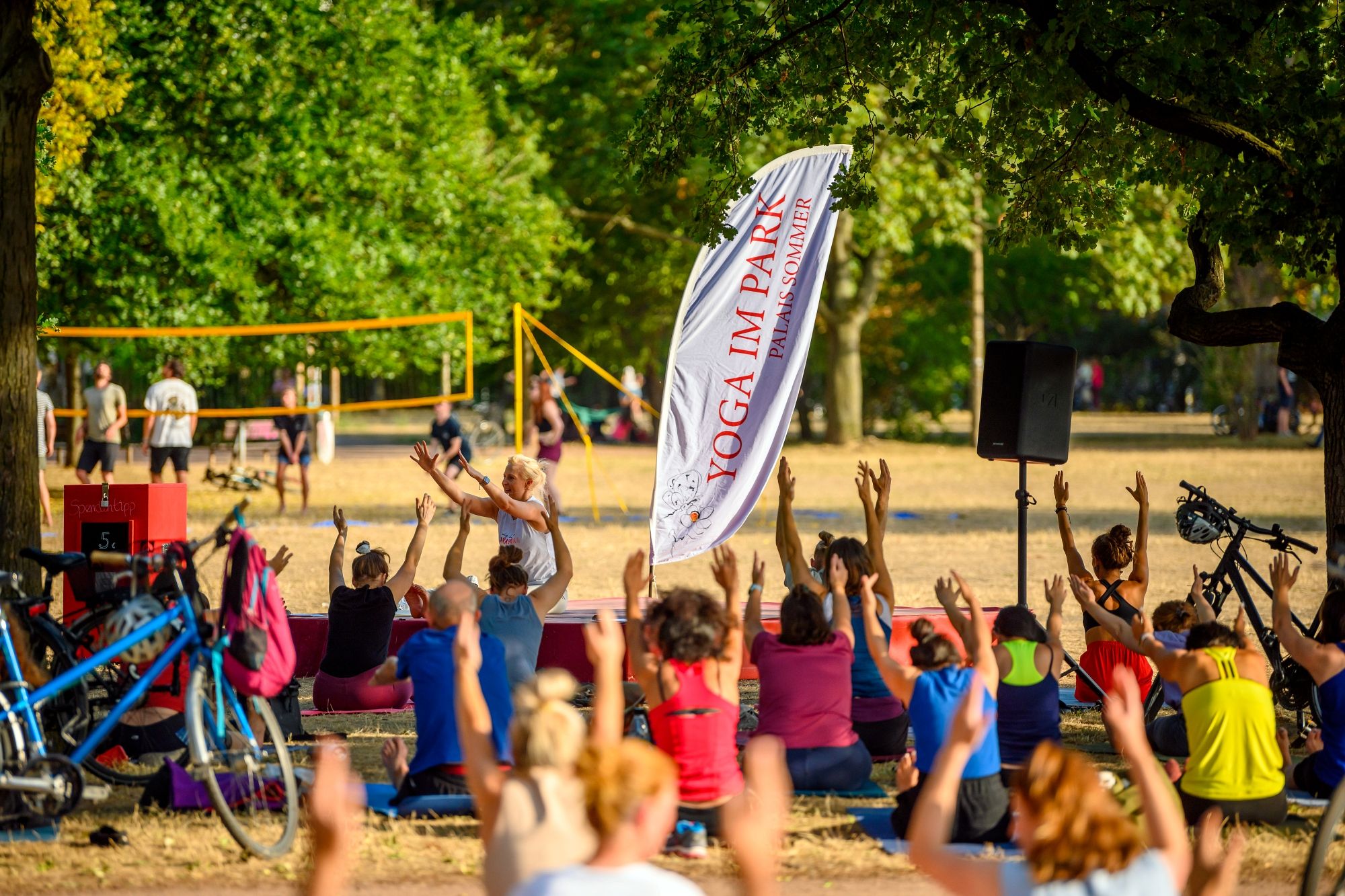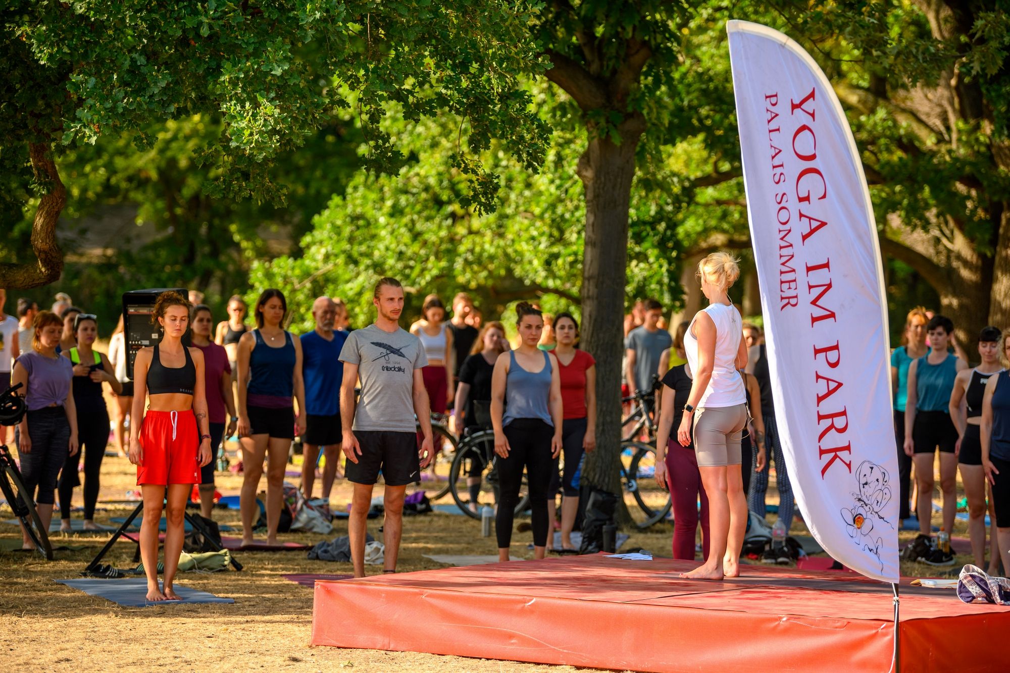 Noch bis Sonntag finden immer früh und abends die Yoga-Sessions auf dem Alaunplatz in der nordwestlichen Ecke unter den Bäumen statt. Die Sessions wurden vom Palaissommer-Team organisiert, das in diesem Jahr kurzfristig einen Ausweichplatz brauchte, da auf der Wiese vorm Japanischen Palais ja der Kultursommer stattfand.
