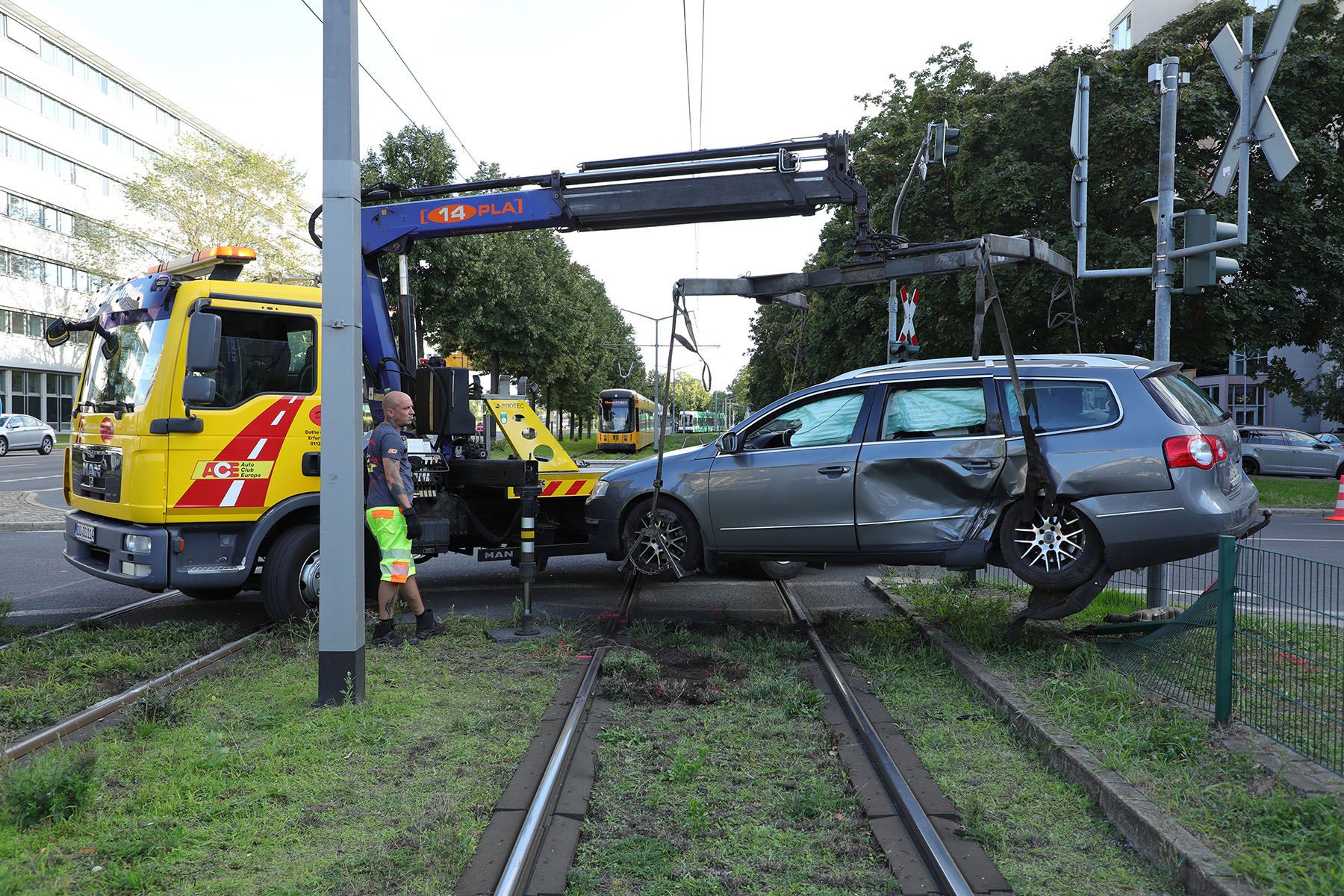 Die Straßenbahn vom Typ NGT D12 DD wurde beschädigt, konnte aber aus eigener Kraft zurück in den Betriebshof fahren. Am Passat entstand Totalschaden. Der Betrieb der Straßenbahnlinien 6, 7, 8 und 11 war für rund anderthalb Stunden unterbrochen. Die Dresdner Verkehrsbetriebe leiteten die Linien u. Der Verkehrsunfalldienst der Polizei ermittelt zur Unfallursache.