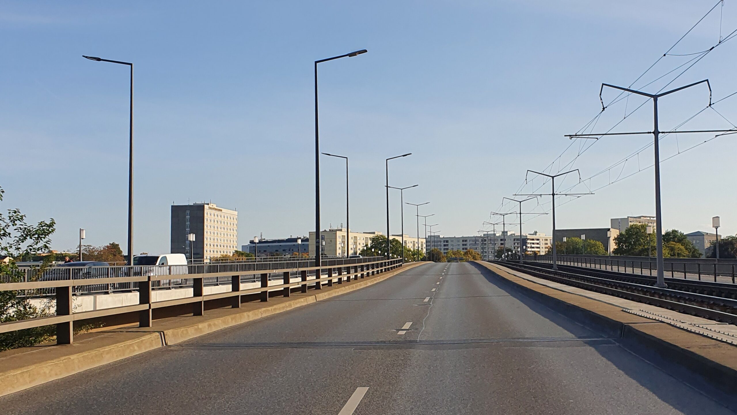 Ab Montag, 10. Oktober 2022, bis voraussichtlich Ende 2023 lässt das Straßen- und Tiefbauamt den mittleren Brückenzug der Carolabrücke sanieren. Obwohl sich das Tragwerk der Brücke in einem guten Zustand befindet, sind verschiedene Erhaltungsmaßnahmen erforderlich, um das Bauwerk auch in den nächsten Jahrzehnten nutzen zu können. Die Fahrbahn wird an die aktuellen Nutzungsanforderungen angepasst.